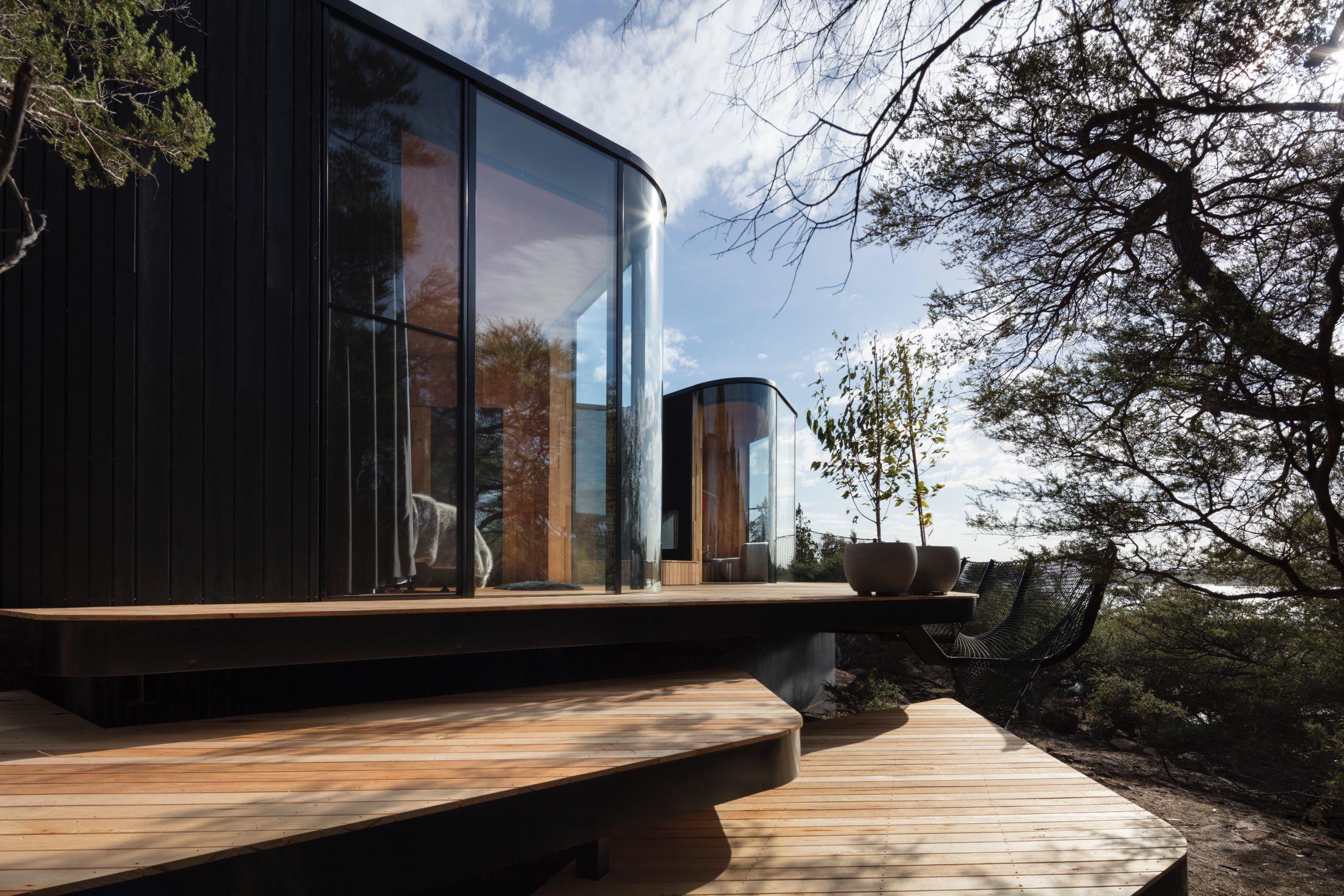 Liminal Studio, an interdisciplinary architecture and design practice, projected the nine Coastal Pavilions that present the newest accommodation offering at Freycinet Lodge, on the coastal edge, at the foothills of the striking Hazards Mountains, amongst the Tasmanian fauna and flora that make up the unique Freycinet National Park.
