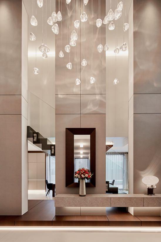 The centrepiece is in the dining room, however, where a customdesigned Manooi crystal chandelier hovers above an Italian volcanic rock table. Rather than an overuse of design, luxury in this family home comes from the understanding of quality rather than quantity. By paying attention to the exacting qualities of construction, materials and elegant design, Benyei Architectural Studio brought luxury to the forefront with a smart and careful sophistication.