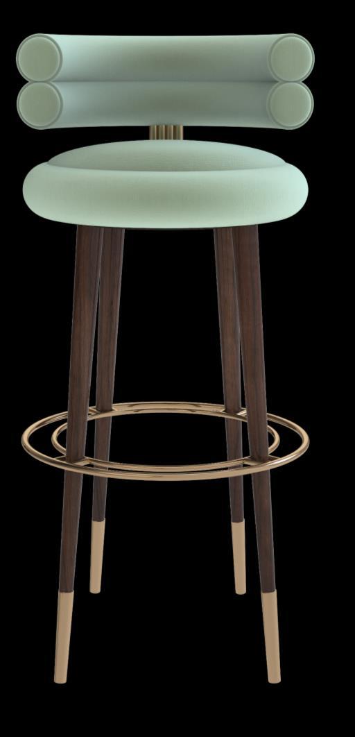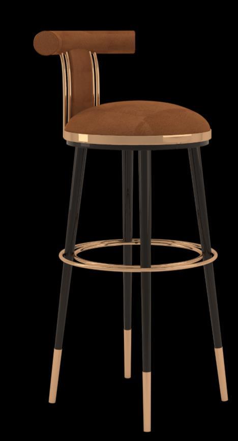 Mezzo Collection's new Betsy bar chair was created to be an object of desire in any bar. Designed not to go unnoticed in any ambience, the Betsy bar chair combines a round upholstered shape with tapered gloss black lacquered legs and brass details. www.mezzocollection.com