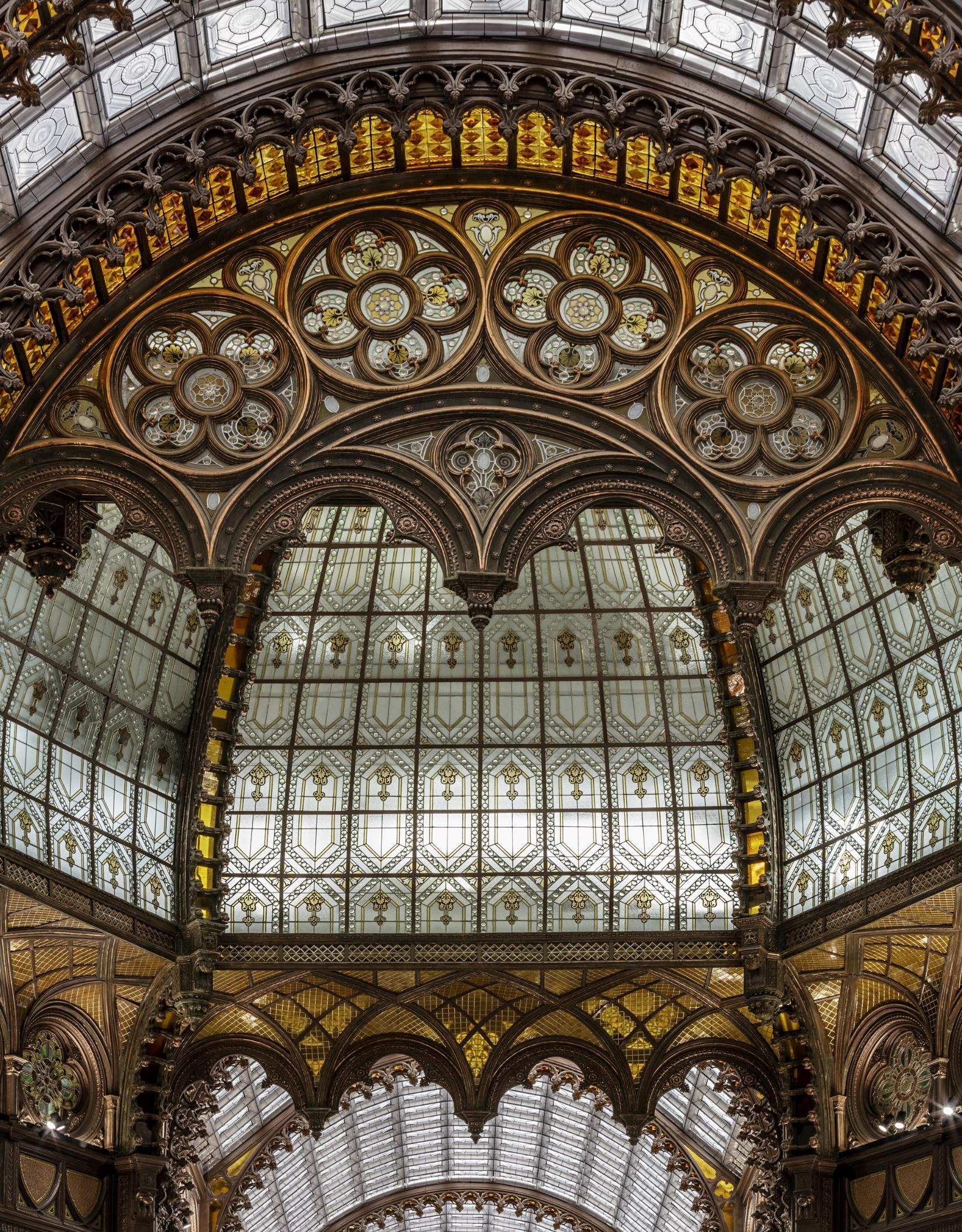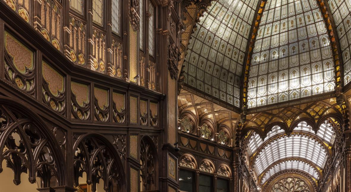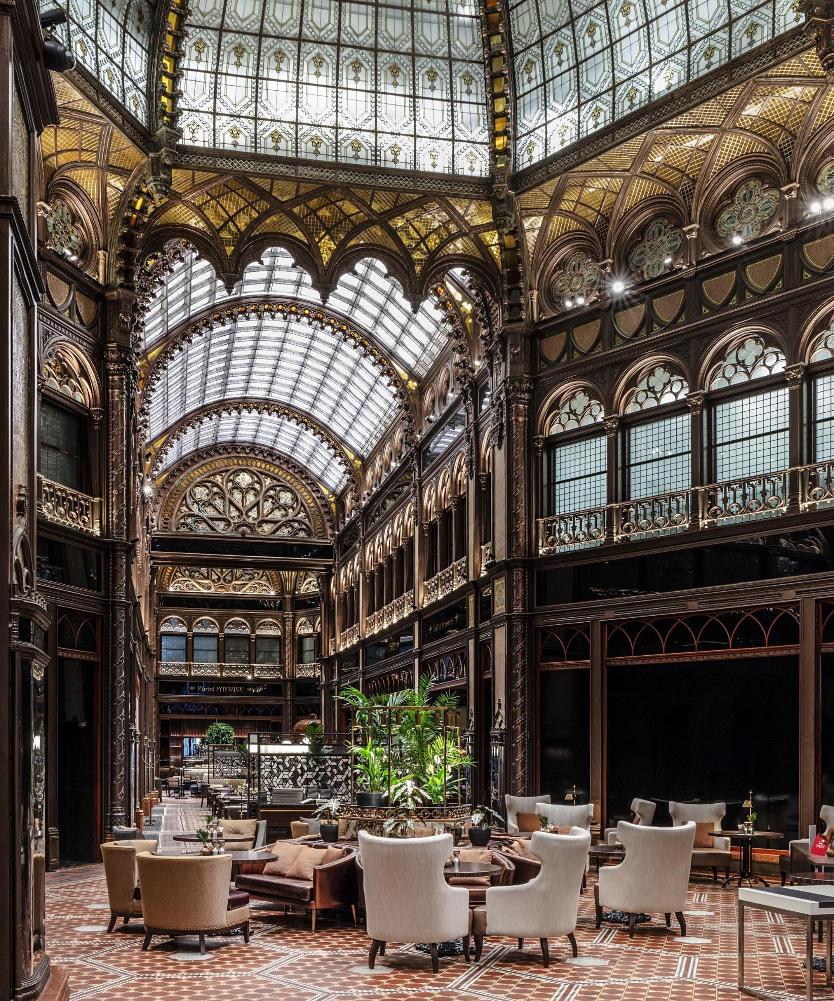 The goal was first to restore the historical features of the central passageway, which is now open to the public as it had been prior to its disrepair. This meant maintaining the unique facades and decorative elements of the building that its creator, Henrik Schmahl, had designed it with when it was built at the beginning of the 1900s Glimpses of NeoGothic, Art Nouveau and Moorish aesthetics can be spotted throughout the covered space. The myriad details that once decorated the passageway is a rarity across Europe, and so when work started it was essential that these same features were restored and maintained to their previous, ornate glory.