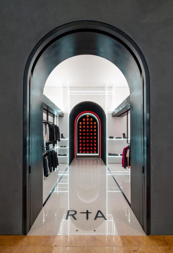 Dan Brunn Architecture has designed the second location for street wise fashion brand Road to Awe, or RtA at the Wynn las Vegas. Within a relatively small space, a clean minimalist design is born from the union of materials like glass, concrete, porcelain terrazzo and blackened steel. Straying away from the traditional retail display, Brunn employs facade glass to create mystery and intrigue. www.danbrunn.com