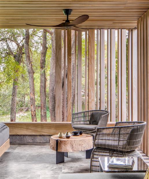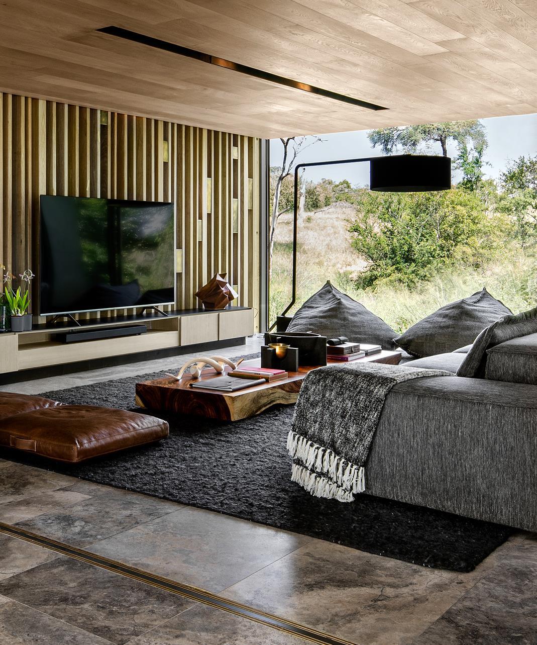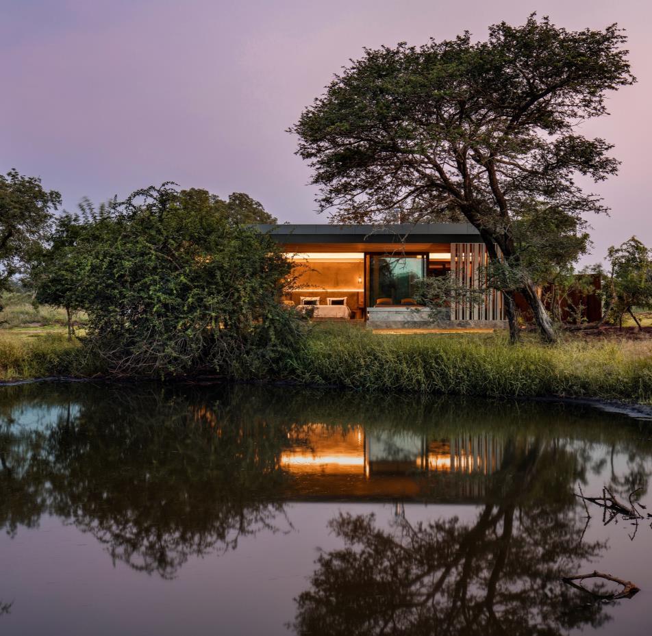 “Ourlifestylesaremodern; natureisrawandprimal.Itisin thathonestcontrastthata beautifultensionexists… Thearchitectureexiststo enhancetheexperienceofthe outdoors-nottomimicit,butto complementitsothatguestsmay experiencethebushmore directly,moreimmediately.”