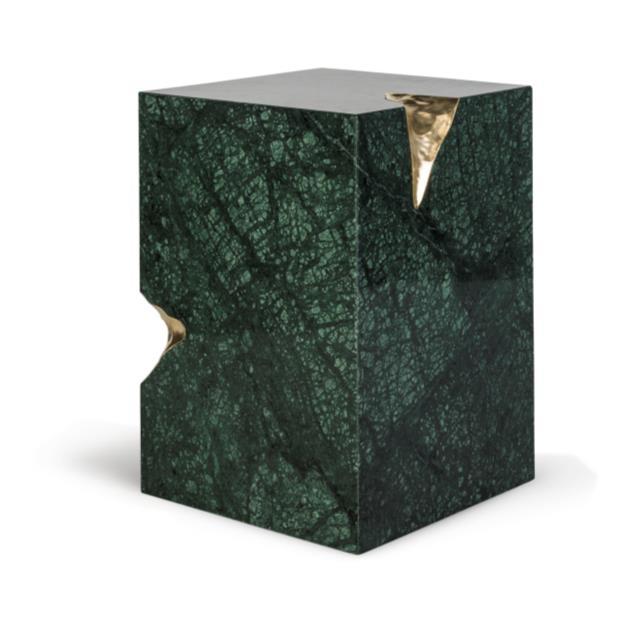 The Ruins side table was born from the Ruins console table. This is another beautiful piece that infuses the classic culture into Bessa's collections and that was inspired by the richness of ancient ruins. The dented brass on the Ruins side table reinforces, in a more subtle fashion, Ruins console table's reference to Greek aesthetics.