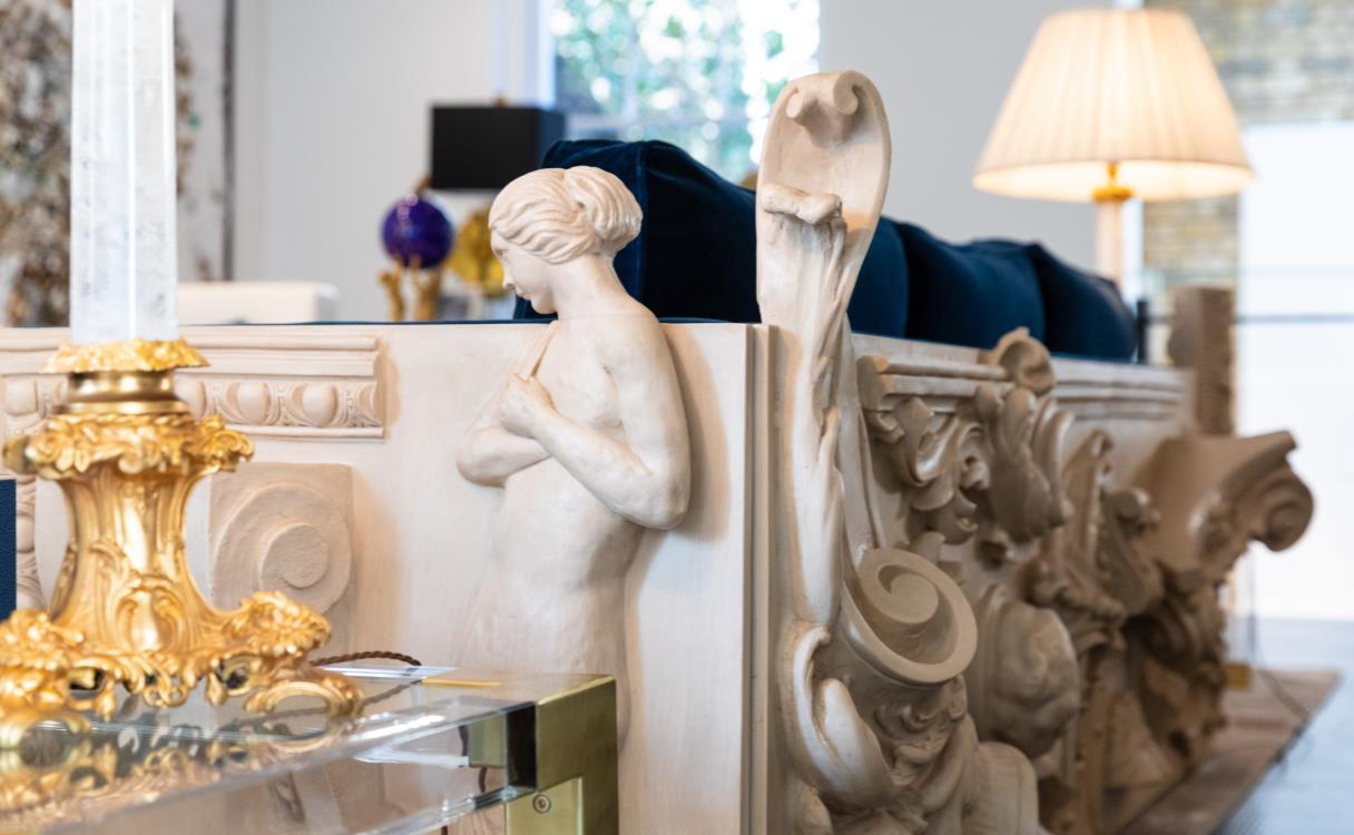 “The Boca Do Lobo Versailles sofa was the focal point for me in the formal lounge which was custom upholstered in a rich deep blue velvet... the sofa was a perfect fit to such an eclectic space.”
