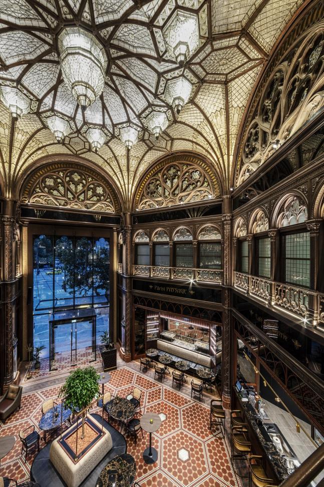 Placed in the famous cinema district in Budapest, one of the most ornamented buildings in Europe, Paris Court has been renovated by the Hungarian studio, Archikon in collaboration with design firm Kroki.