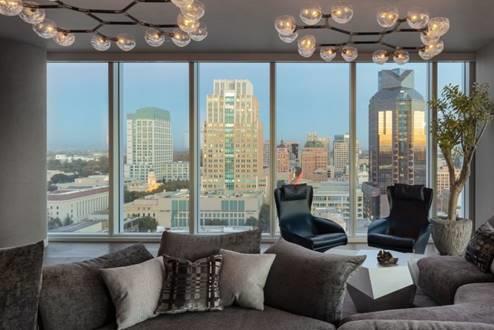 The penthouse is designed by Benning Design Constructions, has a breathtaking view of the city of Sacramento, California. This penthouse has been created with a comfortable contemporary aesthetic, with the priority of having a clear view and able to speak for itself. So the house is completely surrounded by windows and every lighting is dimmable and delicate as Brabbu's Horus Suspension Light frames the incredible room with a reference to European sensibility. www.brabbu.com