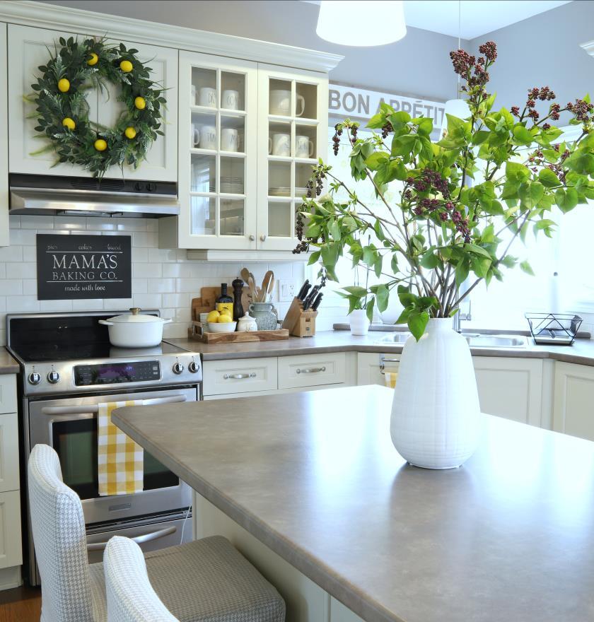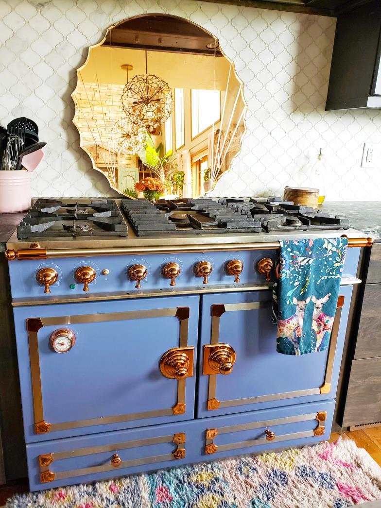 “I added the Heritage sideboard in the dining area that worked perfectly with the kitchen blue agate countertop to pull in all the different shades of blue.”
