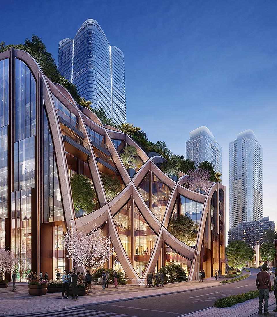 Construction has begun on an innovative redevelopment of the Toranomon-Azabudai district of Tokyo to complete in March 2023. It is Heatherwick Studio’s first project in Japan to go into construction. Working with a complicated, irregular-shaped plot spanning more than eight hectares, the studio has sought to bring harmony and to create a distinctive identity that is particular to Tokyo. The team devised a pergola-like system scaled up to district proportions to organise and unify many different elements of various sizes. In this way, the design allows for significant green space both at ground level and climbing up the podium buildings, without sacrificing connectivity to the ground. Echoing the natural forms of the project’s valley setting, the undulating structure rises like a gently sloping hillside before puncturing the ground to allow natural light to pour deep into the basement retail zones. www.heatherwick.com