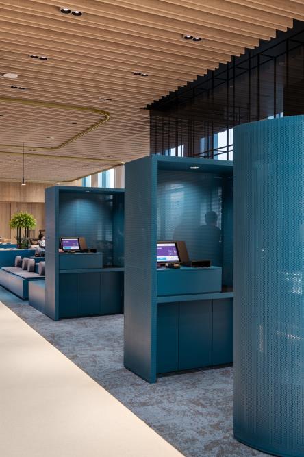Separate private offices in denominations of two to 30 workstations offer an easily scalable, flexible work environment for a total of 2.500 people.