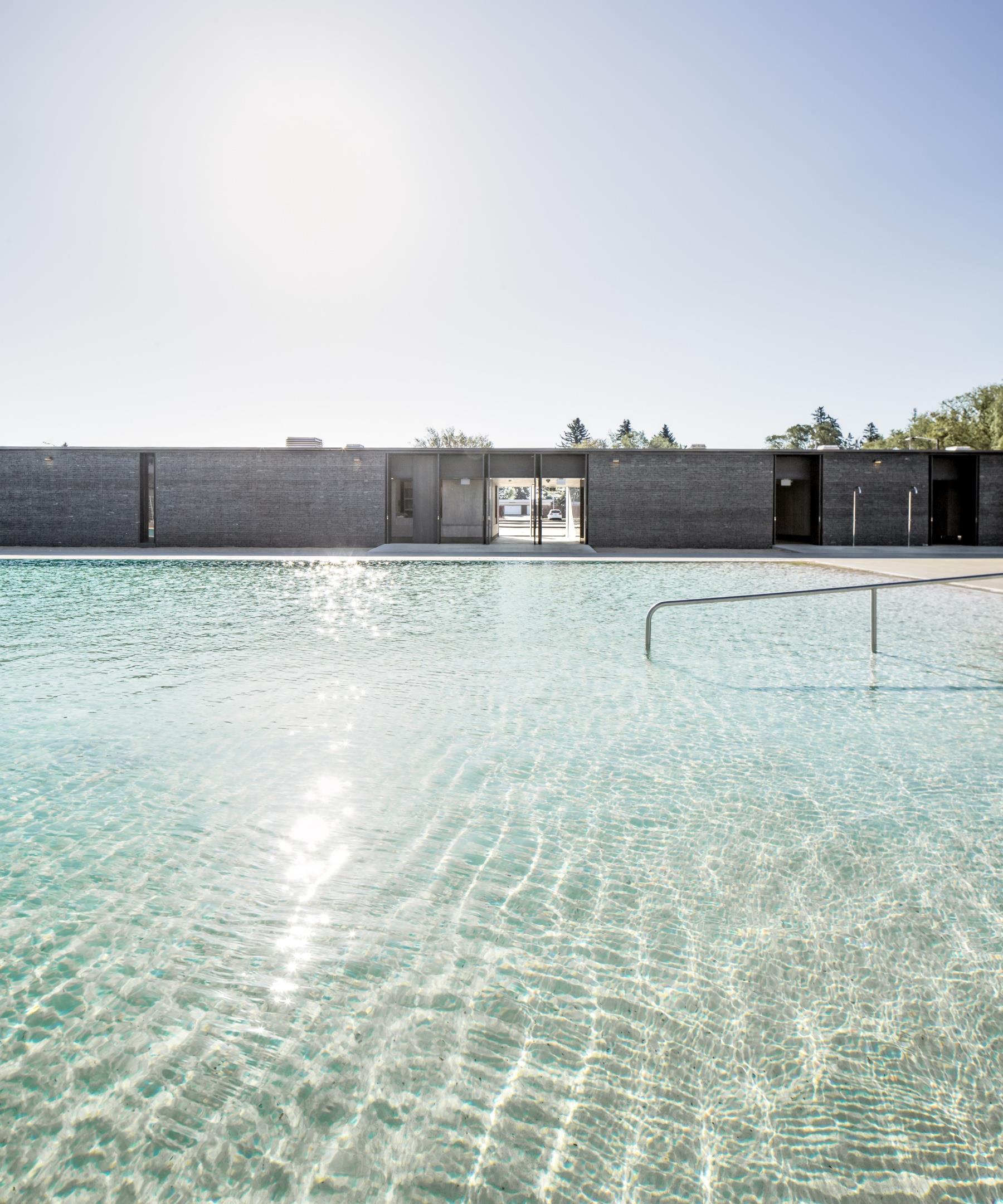 Located in the city of Edmonton, the old existing pool was replaced by a seasonal pavilion and landscaped pool precinct for 400 swimmers. The architectural challenge was to create a large-scale pool with the high-quality water control (a criterion essential for any public bathing facility), while also achieving an environmentally healthy and natural
