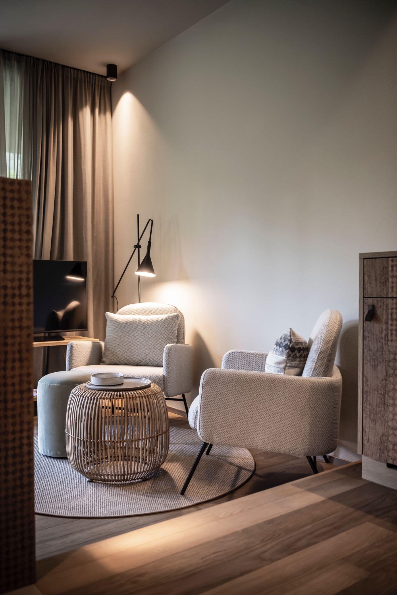 In the night area, the suite rooms were designed using a contemporary and informal style The warmth they give off with the use of different textiles and shades creates a very personal, comfortable and bright environment. Different