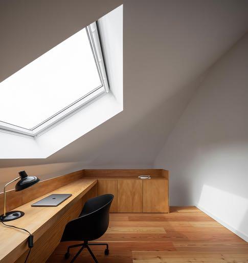 A specific space was allocated for the location of the office, conceived as a very intimate place, near the staircase that provides natural lighting to the home.