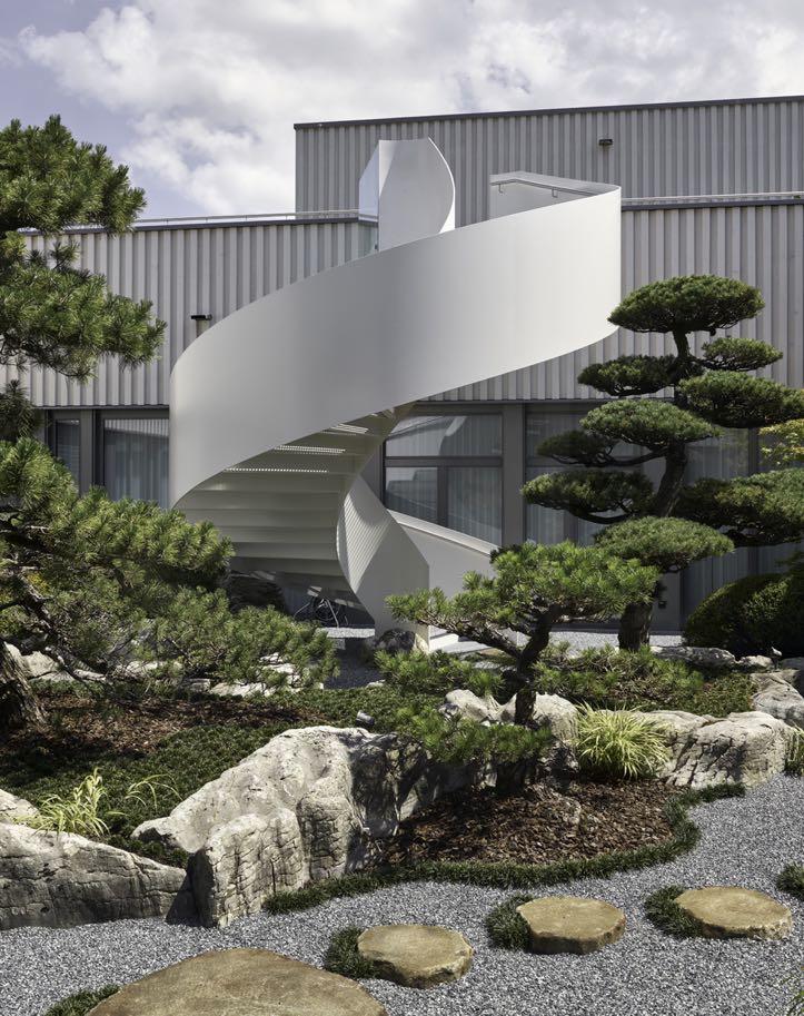 Inside, the transition between environments of varying degrees of intimacy is curated, through form, colour and light, to gradually prepare us to retreat to the most remote places in which to cultivate our dreams. Along the lake, bound by the purifying beauty of the Alps, we are compared to the magnificent scale of the mountains and the sky; on entering the building we experience a gradual reduction to a more human scale, passing from the organic nature of the gardens, through the spacious sinuous reception to find ourselves enjoying the peace given by the evocative force and organic beauty of the courtyards decorated with historic bonsai. In its microcosmic fluidity, precision and beauty, this is a journey from the experience of the great mountains through to the most private intimate spaces. Living in a world of stimuli stretches the perception of time. The senses are stimulated to absorb proportions, light and shade; colours are borrowed from the surrounding nature.