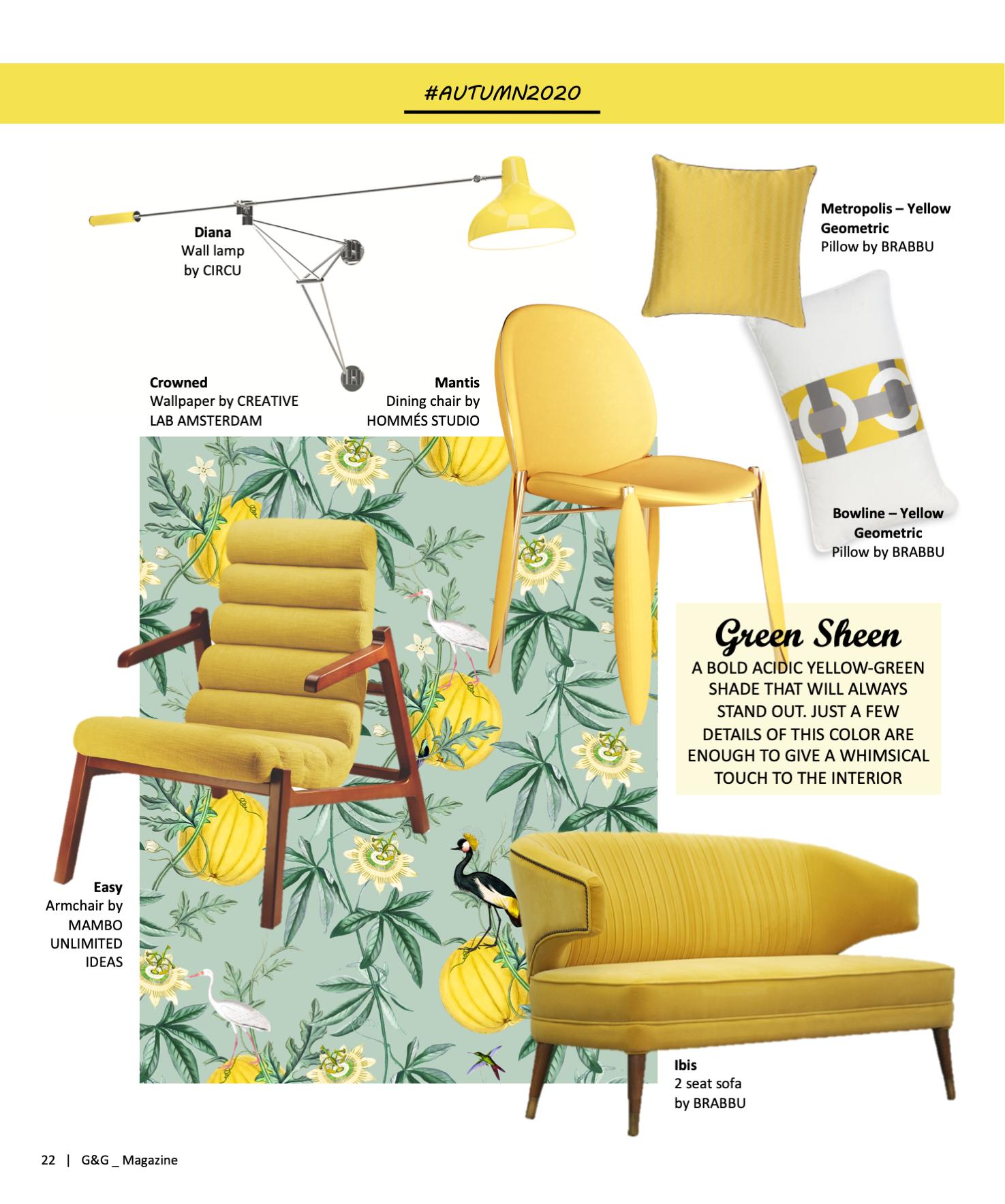 HWith summer behind us, let's kick off this autumn 2020 full of novelty and wonders! Let's start by hinting at this season's Design Trends that you would find at the beginning of this issue. Pastel, bright, deep and classic colours - a more unusual selection than what is expected every year. This rich and slightly extravagant palette of colours serves to encourage our creativity and imagination, reflecting our tastes on the décor. Any object that we choose for a room must not only have its functional purpose but to be a work of art that gives us emotions and pleasure.