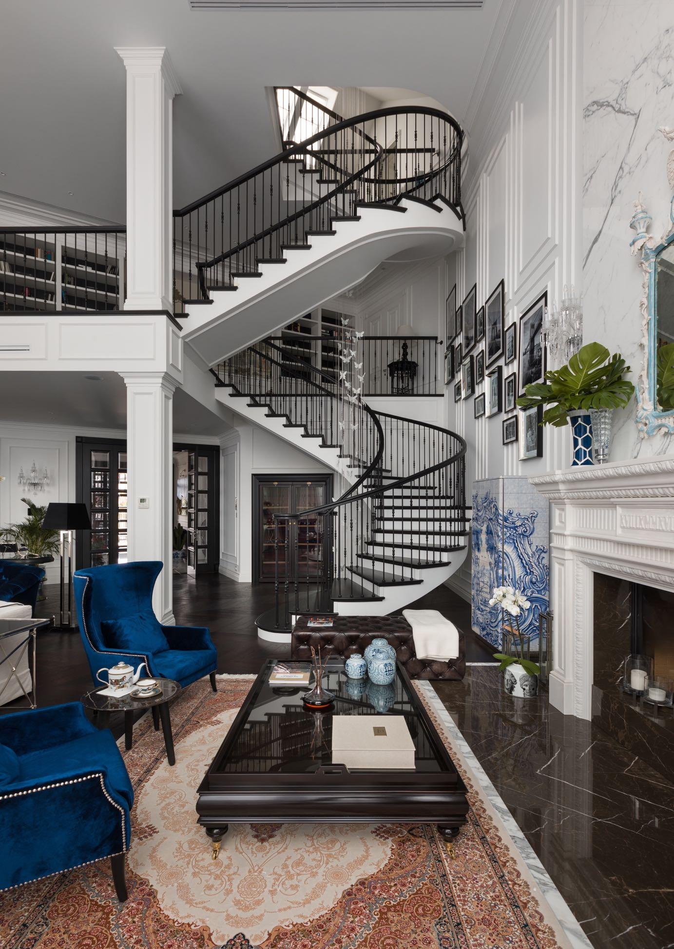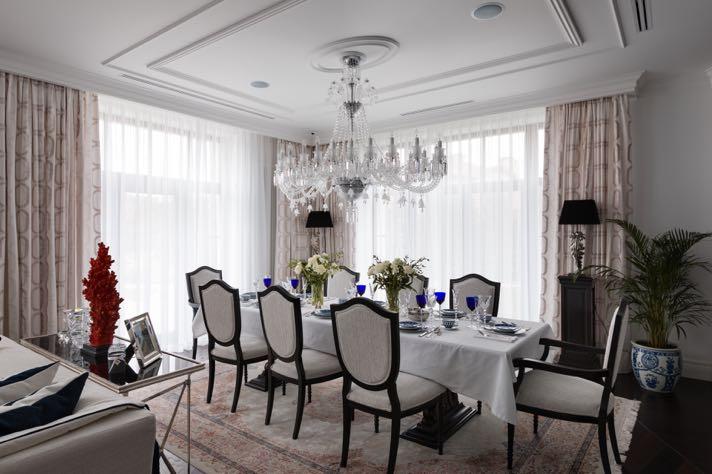 Incorporating distinct style elements important to the client, Bolshakova designed a home that feels classic, yet functional, and undoubtedly sleek. Taking inspiration from French and American interiors, such as the personal homes of Christian