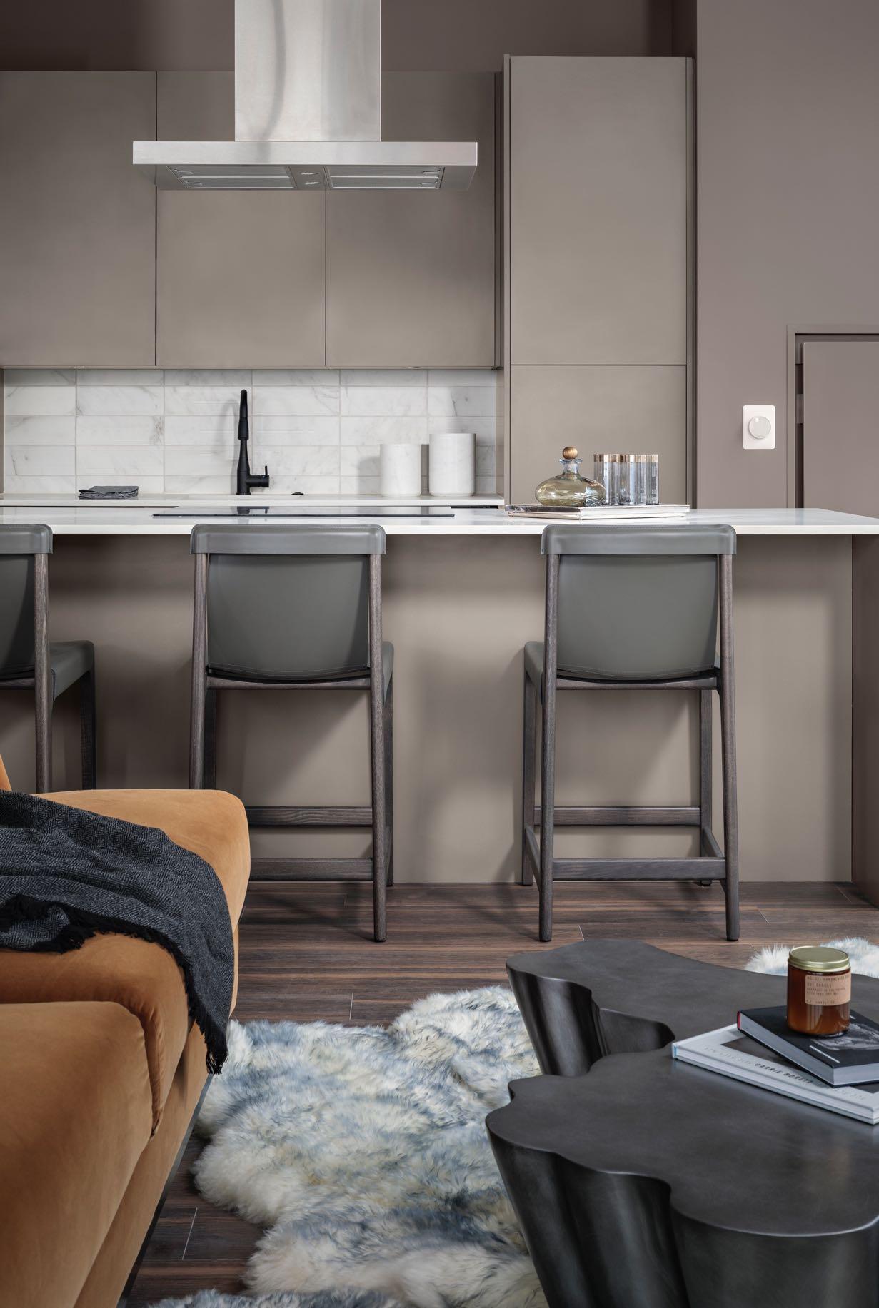 In keeping residents’ personal tastes in mind, Jules Wilson Design Studio chose a simplified, modern design in the apartment units to encourage individual creativity and customization Brick interiors, exposed concrete, and steel frame windows lend an industrial character to the lower lofts. The tower and penthouse residences receive a luxurious treatment, with higher-end finishes, elevated ceilings, and expansive views of the city skyline.