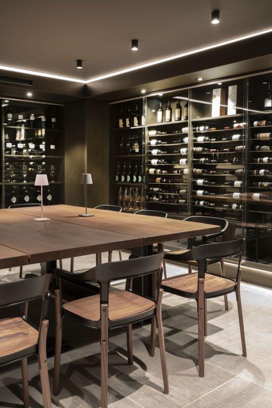 The building comprises a basement and six floors above ground; on the ground floor there are the hall, the coffee bar and the breakfast room, which can be converted into an informal meeting space. While, in the basement there are a meeting room, a SPA comprising a wellness centre and a fitness room, and finally a wine cellar, used for tastings of fine wines.