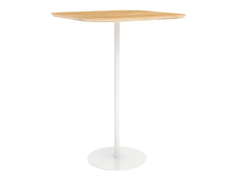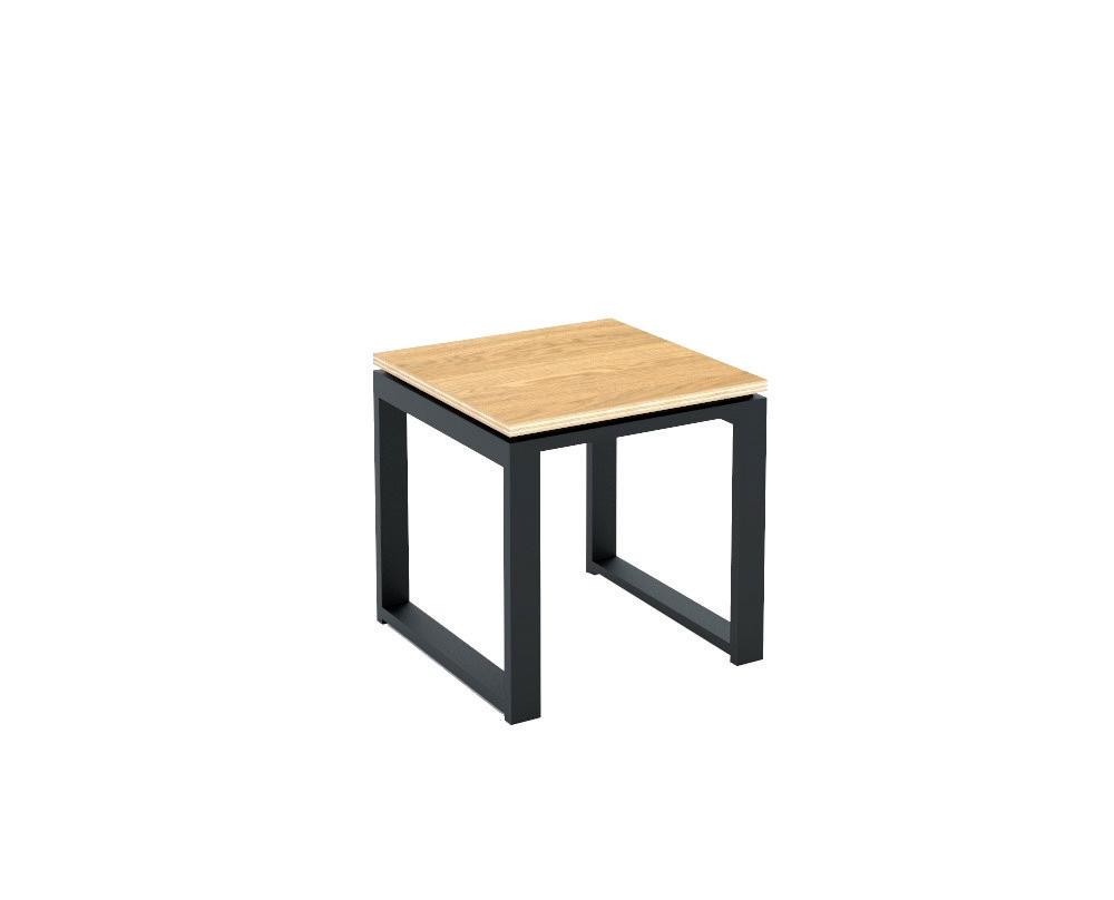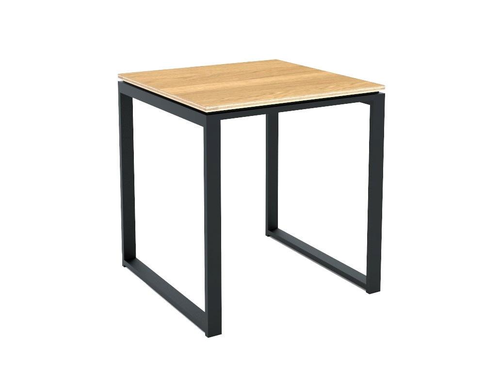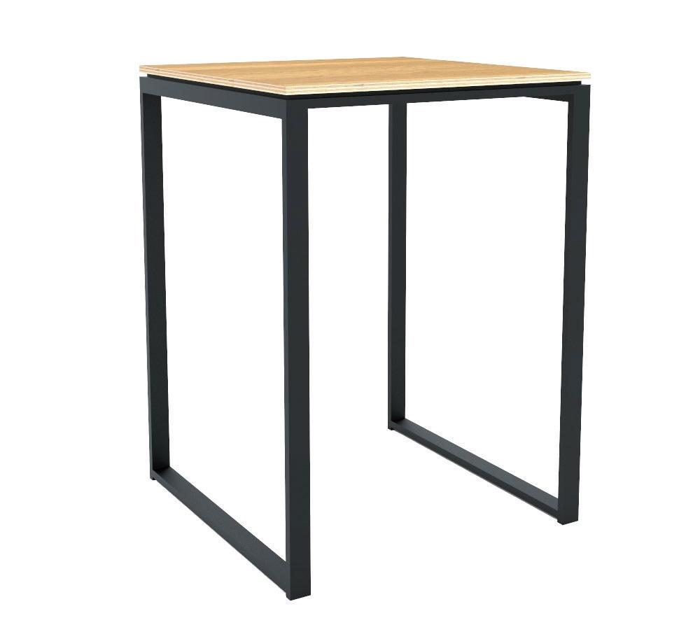 Kvadratisk skiva i fanerad plywood med profilerade metallben, pulverlackerade och tillgängliga i samtliga RAL-färger.