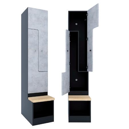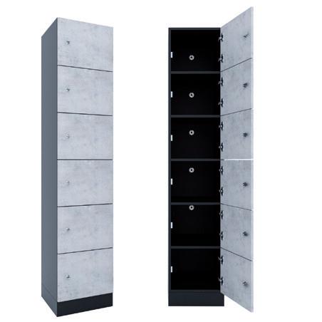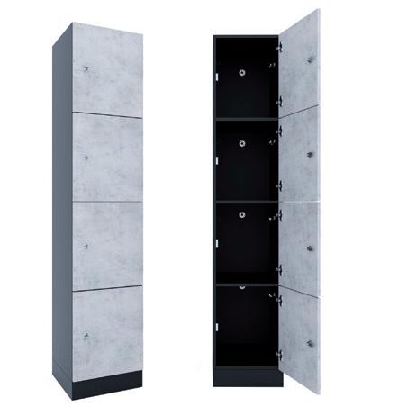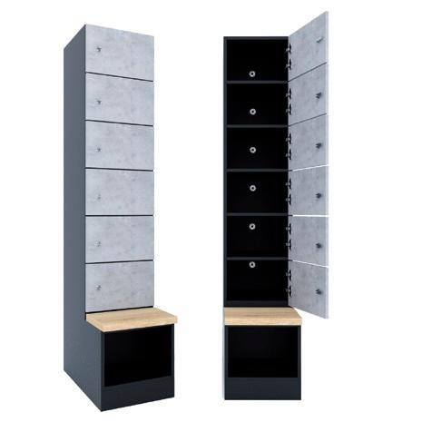 Skåpen kan utformas i en bred variation av färger eller trä-liknande dekor. Var modul har ett integrerat ventilationssystem, hållbara, certifierade gångjärn, förvaringssystem (A-typ skåp – en stång med krokar samt ett hyllplan, övriga skåp – krokar), justerbara ben och socklar.