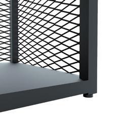 Förvaringssystem konstruerad av stålprofiler med ett expanderat metallnät, med fasta ben eller hjul som alternativ. Utformningen anpassas efter behov och utrustning.