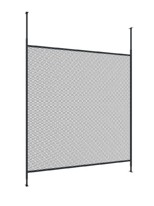 Konstruerad av stål och expanderat metallnät som pulverlackeras. Finns tillgängligt i samtliga RALfärger. Fungerar både för att dela in utrymmet i olika funktionella zoner såväl som ett dekorativt element.