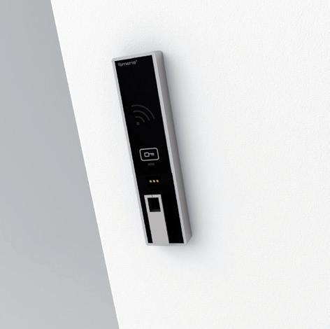 Batteridrivet, kontaktlöst, elektroniskt lås. Den multifärgade LEDbelysningen indikerar skåpets nuvarande låsstatus med färgerna grönt och rött. Styrs med kort, vristband eller chip. RFID standard: iClass och MiFare (13.56 MHz) Drivs med tre premium AA-batterier, har en beräknad medellivslängd på 10 år.