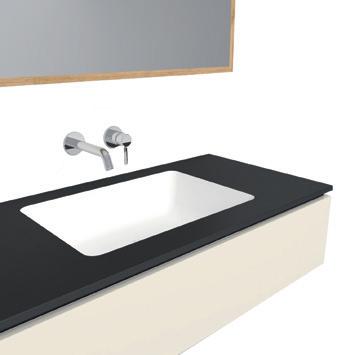 Ett mer modernt val som genom sina nedsänkta handfat ger en stilren känsla. Kompletterar moderna och stilrena omklädningsrum bra. Integrerad ledbelysning i spegeln.