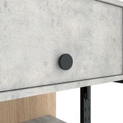 Bänkar konstruerade av högkvalitativt laminat och hyllor av en metallkonstruktion som kompletterar utseendet.