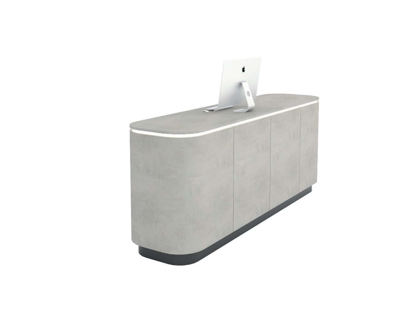 En oval receptionsdisk för en djärv och okonventionell interiör. Den rundade formen tillsammans med en mängd tillgängliga färgval ger möjligheten till en unik receptionsdisk.