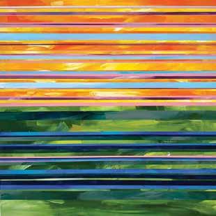 Karin Aggeler focuses on abstract expressions of landscapes, and moods and memories in vivid or soft hues on canvas, with works from 12 x 12 inches to 5 feet.