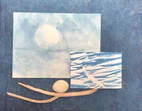 “All too often, people living with mental illness are marginalized and not seen; while others may focus on their differences or limitations, MWC chooses to see their attributes, their strengths and their resilience despite the often enormous odds against them.”Glass art by Kristine Kelly Mixed media beach landscape by Elizabeth Imperato