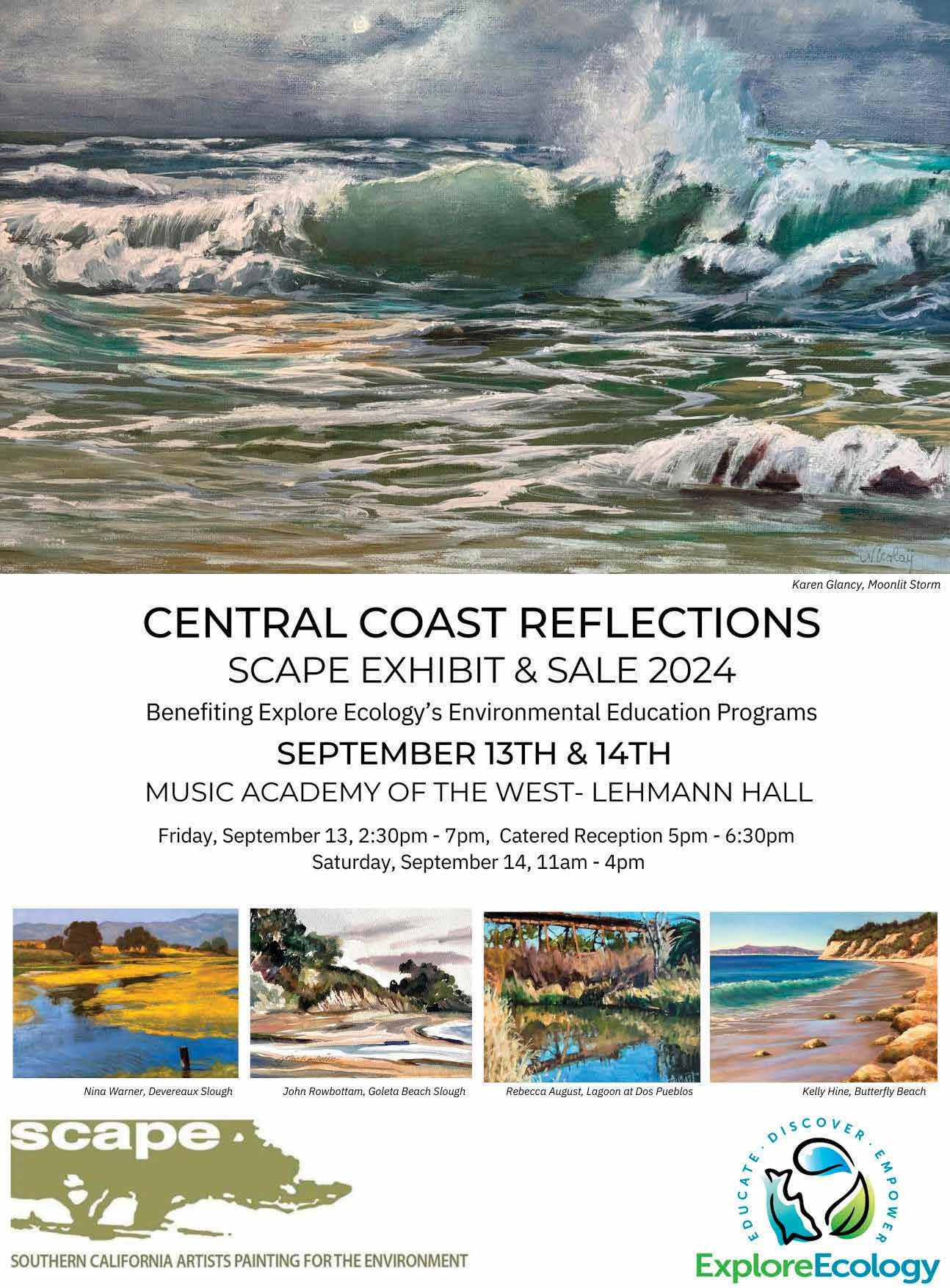 SCAPE Artists Art Show • Southern CA Artists Painting for the Environment • Music Academy, Lehman Hall • Free • https://scape. wildapricot.org • 2:30-7pm Fr, 9/13 & 11am-4pm Sa, 9/14.