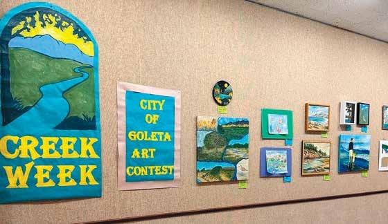 EL SALÓN DE USOS MÚLTIPLES DE LA BIBLIOTECA DEL VALLE DE GOLETA en 500 N. Fairview Avenue se ha transformado en una galería de arte para la Semana del Arroyo desde ahora hasta el 1 de octubre. Visítenos durante el horario de servicio para ver las 57 obras de arte que se recibieron para el Segundo Concurso Anual de Arte de la Semana de los Arroyos, un aumento con respecto a las 38 presentaciones recibidas el año pasado. En honor a la Semana de los Arroyos, que se celebrará del 23 al 30 de septiembre, la biblioteca aceptó presentaciones de obras de arte de todas las edades inspiradas en nuestros arroyos, cuencas hidrográficas y océanos. El tema de este año es “Goleta, la buena tierra, hábitats prósperos”.