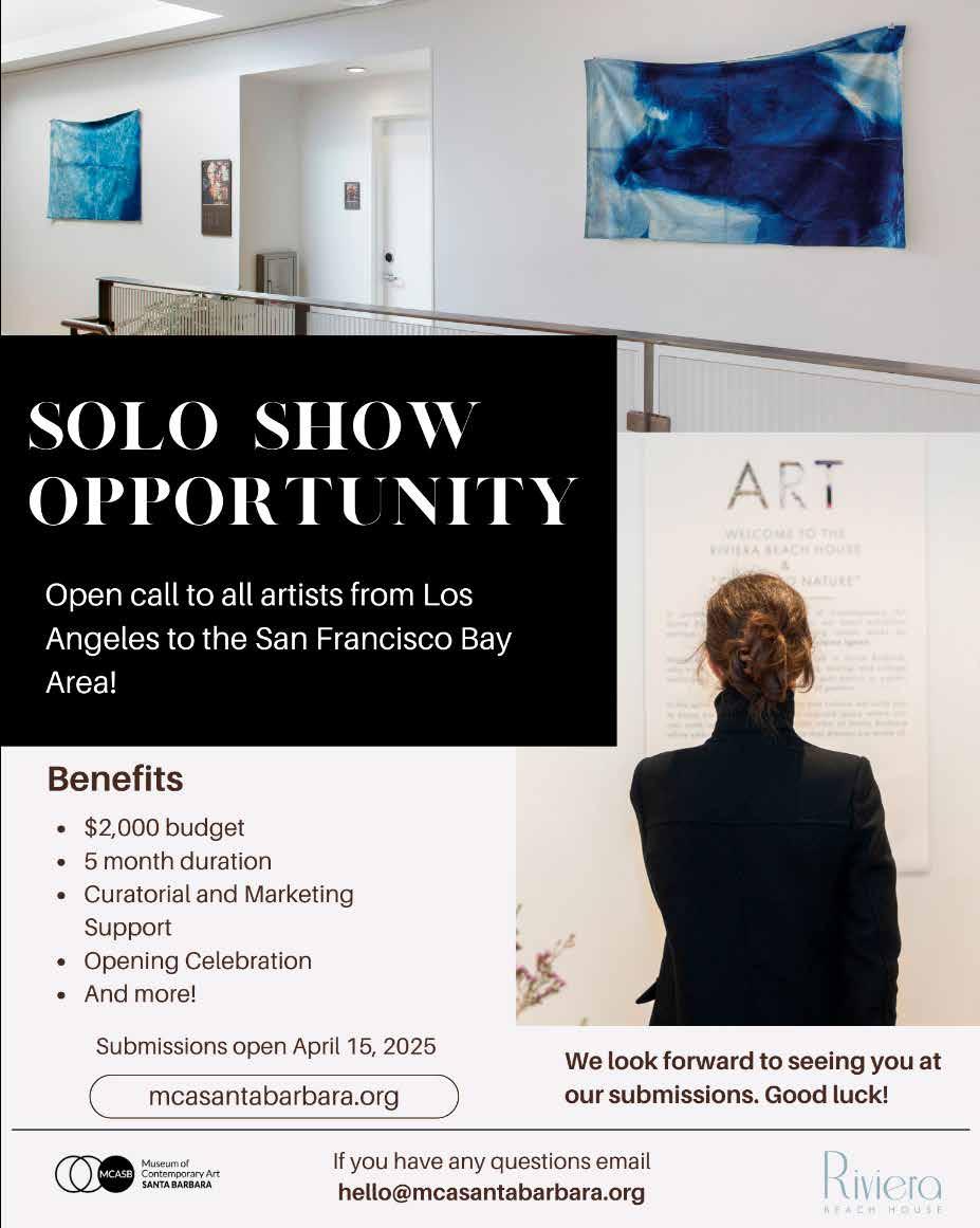 “Our Spring Art Show is a great way we can showcase the amazing works of art that our residents have created and also share them with the greater community,” said Linda Perez, executive director, Samarkand. The Art Show will take place in the Mountain Room at the Samarkand, located at 2550 Treasure Dr in Santa Barbara. For more info, call 805-6870701. Fri, 5/9 Opening Reception, 3-4:30pm Fri, 5/9. Hours: 10-5pm Sat, 5/10; 10-4pm Sun, 5/12; 10-2pm Mon, 5/12.