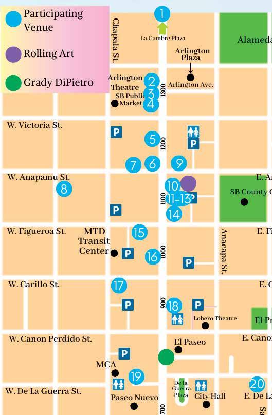 7. 10 West Gallery • 10 W. Anapamu St. • An artist interprets a landscape, figure, or even a state of mind, baring their souls to the world on canvas, in stone, or other medium of choice—evoking thought and emotion with color and shape. Come in and feed your soul on the fruits of their efforts!