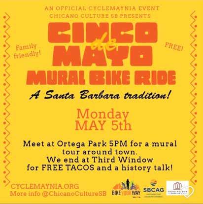 Rolling Art • Santa Barbara Library Plaza • Come see seven Cycling Without Age trishaws painted by local artists Solange Aguilar, Izabella Garfias, Kevin Gleason, Blair Looker, Dez Porter, Jeff Shelton and Richard Wilke. Meet the artists and enjoy music and treats. At 6pm all cyclists are invited for a celebratory ride on State Street. Cargo bikes welcome!
