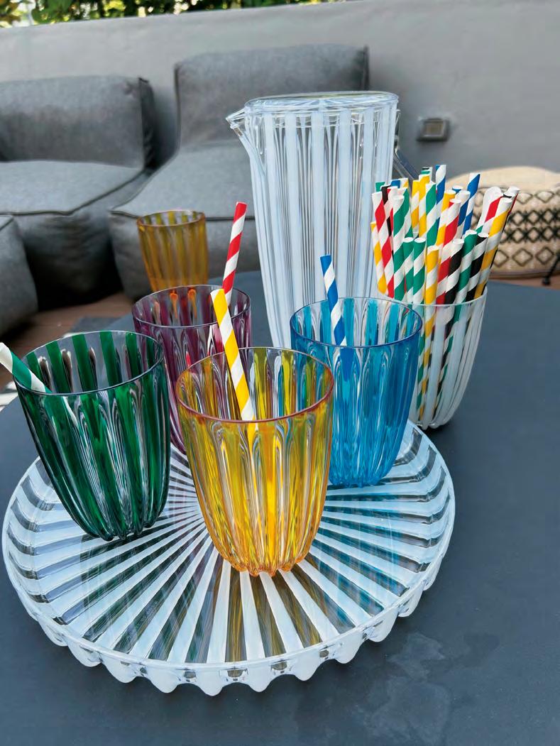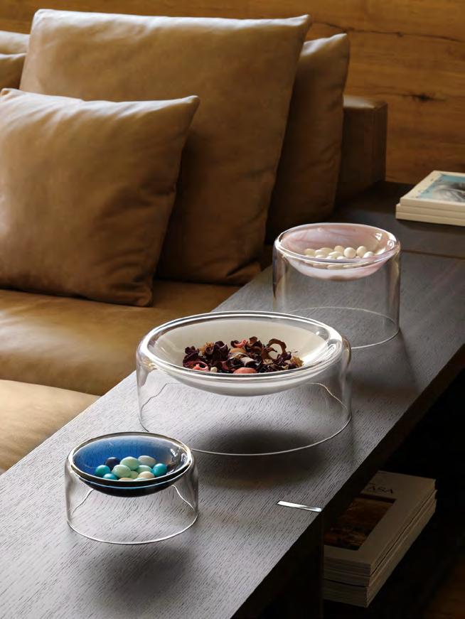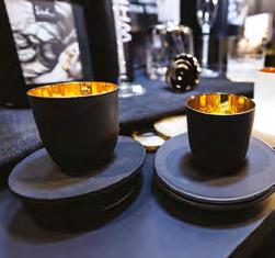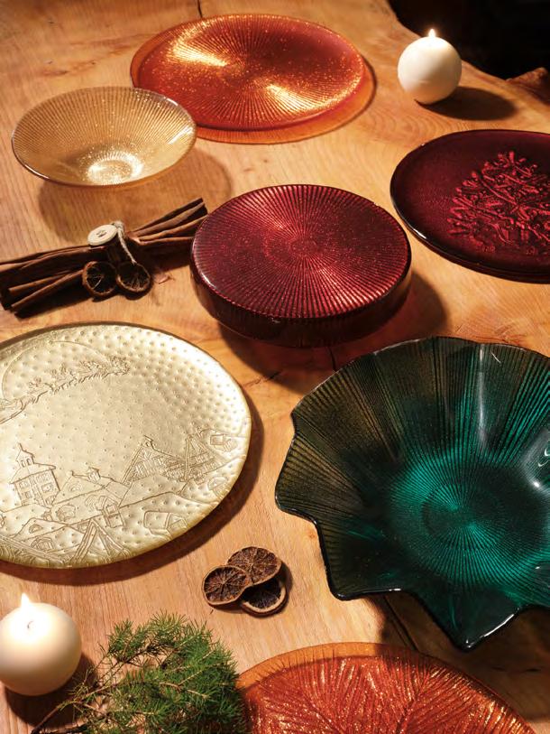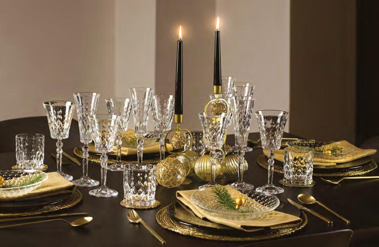 Il Natale poi, si sa, è il momento in cui la voglia di stare in una casa dove si respira la calda atmosfera di questa ricorrenza torna a tutti; il piacere di stupire parenti e amici con addobbi nuovi come delle palle in vetro soffiato con righe arcobaleno e bande glitterate e una tavola apparecchiata di tutto punto, partendo da coloratissimi bicchieri, calici e flûte in Eco Cristal per arrivare a raffinati servizi in porcellana con motivi che richiamano i dolci tipici del Natale e alle magnifiche posate 100 in PVD oro qui in copertina.