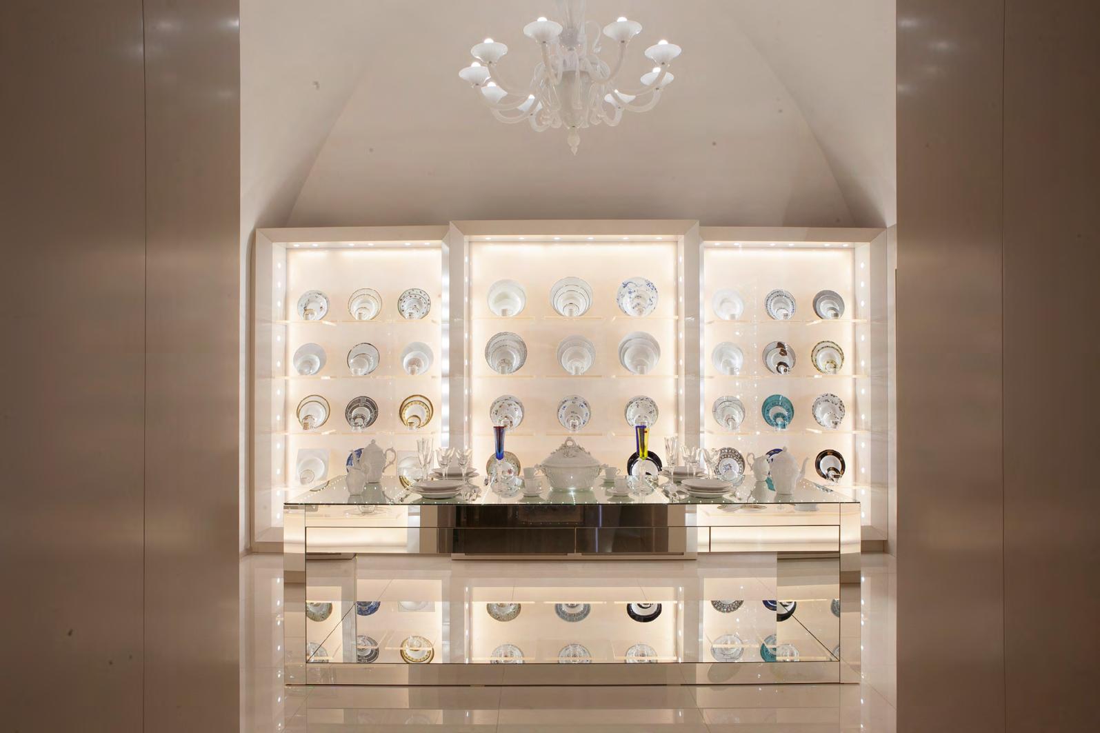 Una cascata di punti luce veste i calici in Luxion® di RCR, un vetro sonoro superiore brevettato, concepito nel pieno rispetto dell’ambiente e 100% riciclabile, utilizzando forni di fusione elettrici.