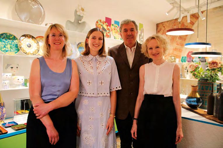 In alto, la famiglia Morandin, custode di una tradizione di eccellenza dal 1958. In basso, una vetrina e l'interno del negozio Morandin Regali a Treviso.