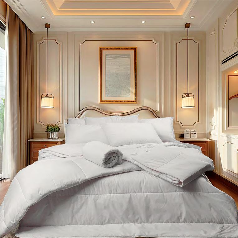 l’inverno in piumoni e trapunte performanti. Per quanto concerne la prossima stagione, stiamo puntando su una linea di piumoni anallergici –in svariate grammature – che permettono di soddisfare le variabili esigenze di peso e calore a seconda dei diversi mesi dell’anno. Inoltre, il nostro attuale focus è indubbiamente sul design funzionale: il sistema sacco copripiumino/piumone viene molto apprezzato dall’utenza per la facilità con cui consente di rinnovare frequentemente l’aspetto della camera da letto cambiando unicamente il sacco e non l’intera trapunta. Ciò si dimostra particolarmente rilevante in un contesto di temperature in aumento e spazi abitativi in contrazione, oltre che per consentire un più rapido riassetto quotidiano della stanza”. Sotto il profilo tecnologico, l’azienda sta lavorando su piumini e trapunte con regolazione termica intelligente, così da far mantenere una temperatura ottimale durante il sonno e, di conseguenza, garantire il massimo comfort in ogni stagione. “Questo si ottiene attraverso materiali