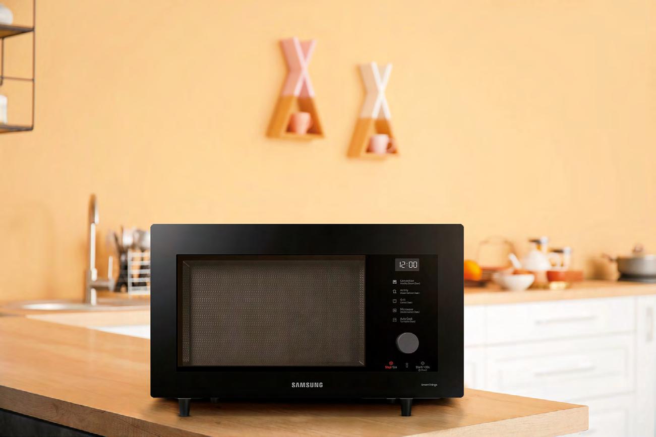 Il forno a microonde Samsung Bespoke MC32DG7646KKE1 è ultra performante. Capacità di 32 litri, Power Defrost per scongelare rapidamente e in modo uniforme qualsiasi alimento, cottura a vapore, Grill XXL, programmi automatici, sistema Wi-Fi e app SmartThings, per comandarlo persino da remoto.