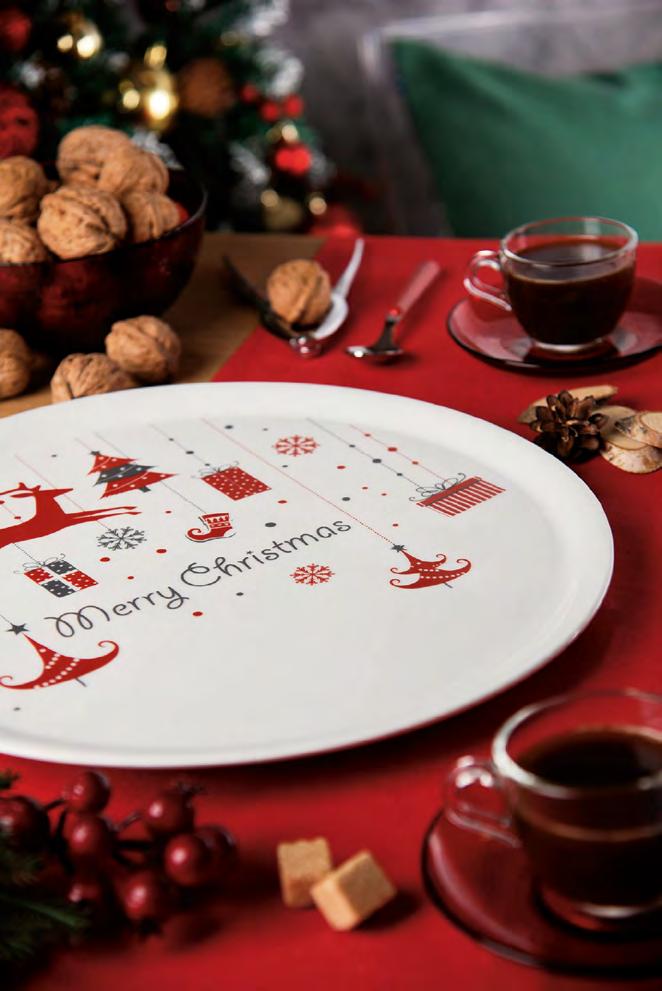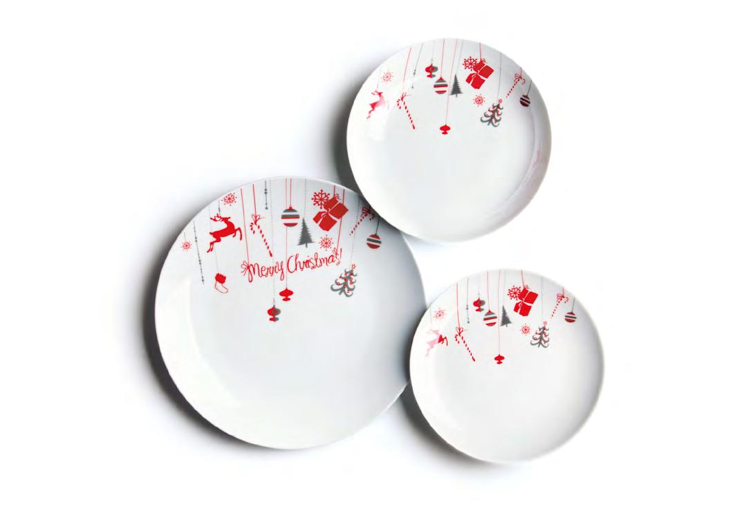 Il servizio di piatti Merry Christmas di Excelsa è composta da 18 pezzi in porcellana decorata a festa: 6 piatti piani cm 27; 6 piatti fondi cm 20; 6 piatti frutta cm 19. Lavabile in lavastoviglie e resistente in microonde.