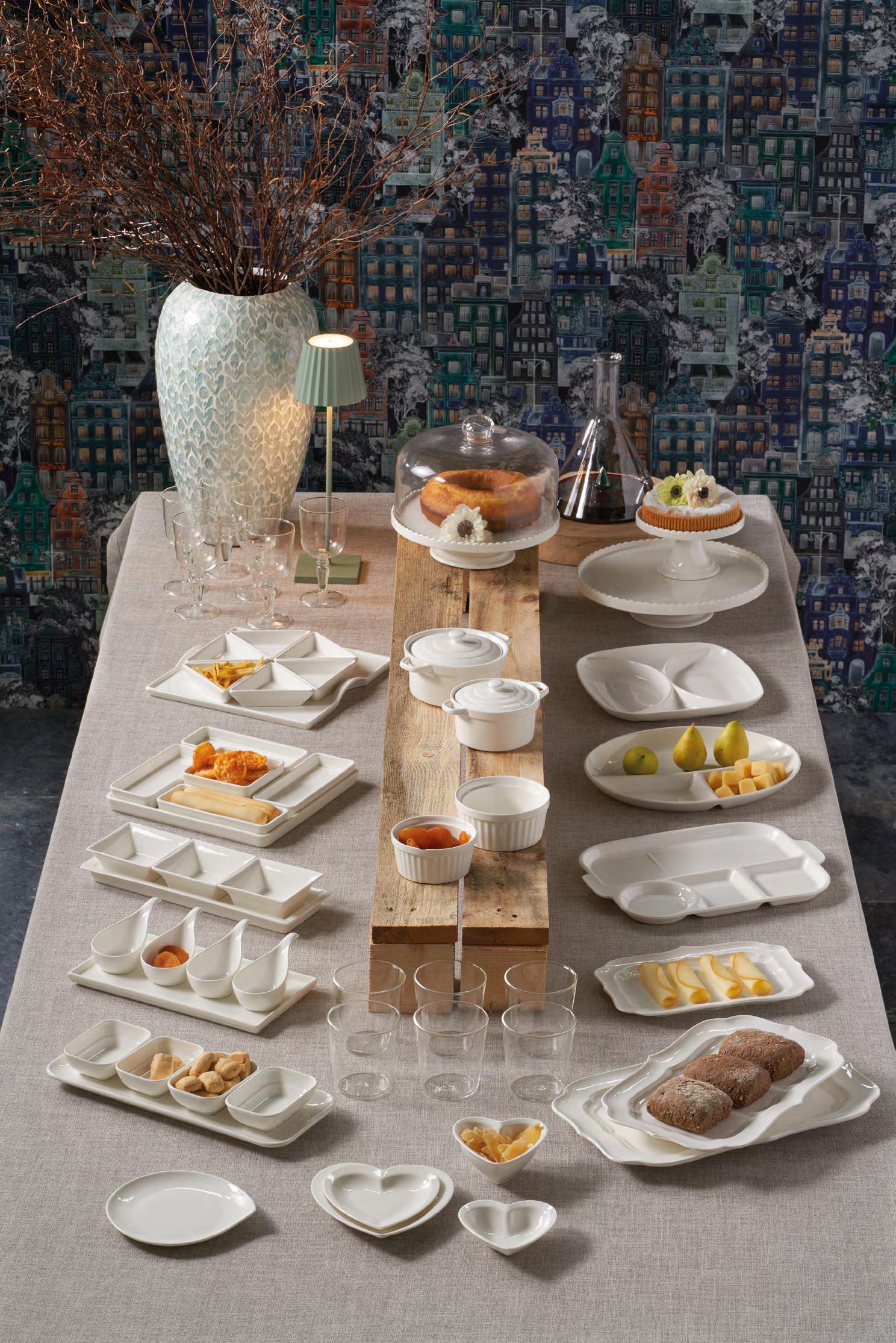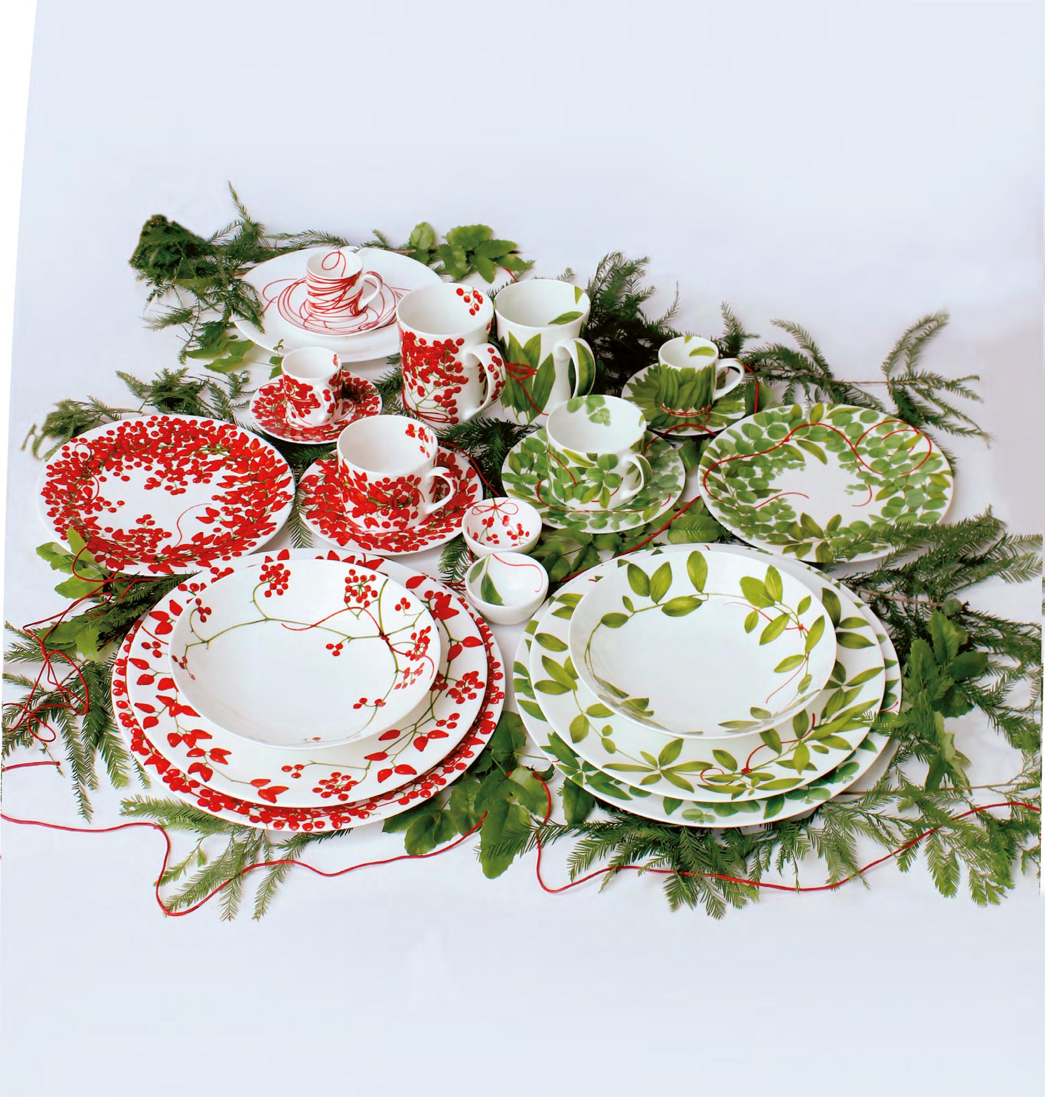 Il servizio tavola da 18 pezzi, con tovaglia in cotone coordinata della linea Sterlizia di Andrea Fontebasso 1760, è l’alternativa contemporanea al tradizionale decoro con le stelle natalizie. In porcellana, adatto a lavastoviglie e microonde.
