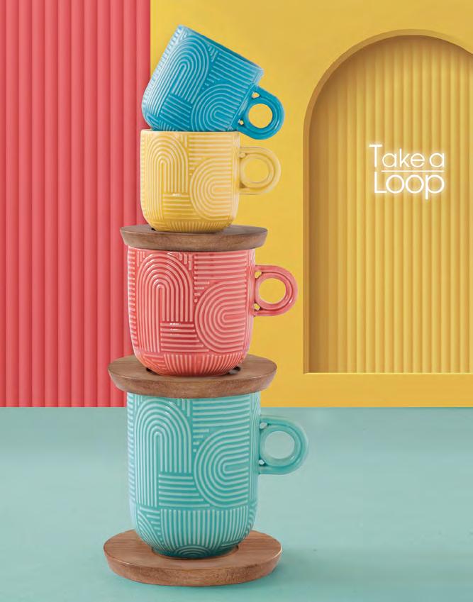 Allure vintage per il servizio in gres Coffe & More di Sagaform, distribuito da Schonhuber. Perfetto per la colazione, comprende piattini, tazzine, mug e portauovo con decori a rilievo ed è disponibile in diversi colori.