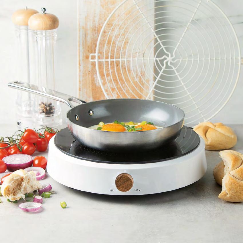 Compatto (diametro cottura 18 cm) e potente, il piano a induzione DO30112IP di DOMO, distribuito da Trabo, sta ovunque e si sposta facilmente. Ha il termostato regolabile con 9 livelli, la manopola effetto legno con indicatori led e potenza di 2000 W.