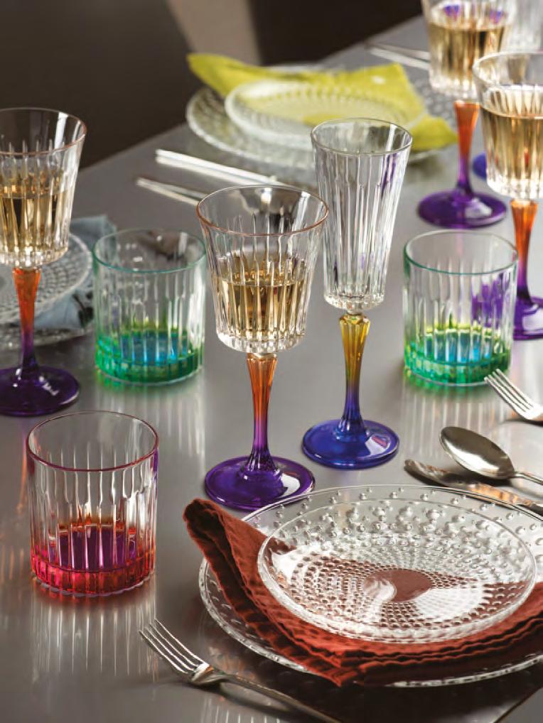 RCR porta in tavola un ricco mix di colori dall’appeal irresistibile. La collezione di bicchieri, calici e flute Gipsy è realizzata in Luxion®, il vetro sonoro superiore brevettato e riciclabile all’infinito, che ha tra le sue caratteristiche principali un’eccellente performance in termini di resistenza, trasparenza, brillantezza e sonorità.