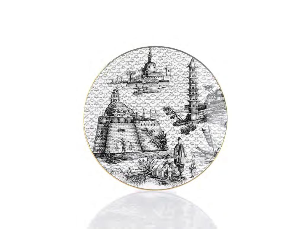 But then we also find objects created to be passed down and enjoyed by multiple generations, like the porcelain sets from the new collection on the cover, proposed by Weissestal, Souvenir de Voyage, designed by the versatile creative Simone Guidarelli, a fashion designer who ventured into his search for beauty with porcelain plates featuring precious finishes and decorations with oriental motifs and Renaissance fountains.