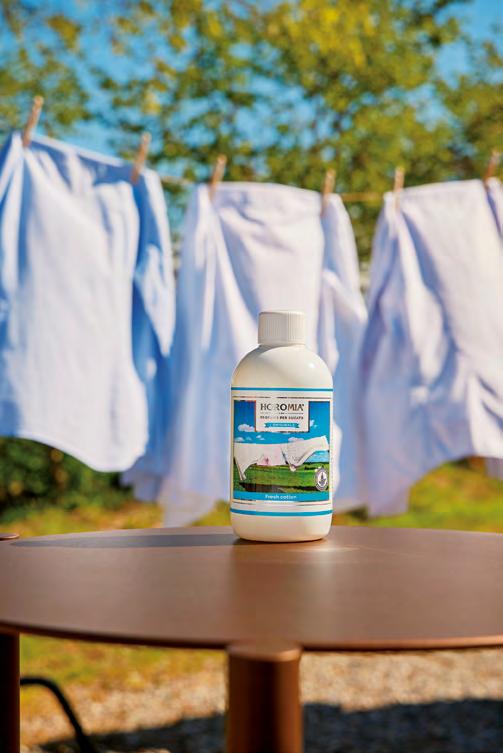 Aprire l’armadio ed essere pervasi da un piacevole profumo che ci si porta dietro anche dopo aver scelto il capo da indossare: è una sensazione di freschezza e di benessere che accompagna per tutta la giornata grazie alle fragranze di Horomia, molto più di semplici profumatori per bucato. Sono formulate utilizzando materie prime ricercate come oli essenziali naturali di alta qualità, senza impiegare sostanze tossiche e senza test su animali nel pieno rispetto delle direttive europee, persistenti e versatili perché possono essere utilizzate in diverse fasi della cura dei capi. Nel lavaggio in lavatrice basta versare 10-20 ml di prodotto, per una profumazione più o meno intensa, nella vaschetta dell’ultimo risciacquo, eventualmente insieme all’ammorbidente; per il bucato a mano si utilizza la stessa dose in 5 litri d’acqua, sempre nella fase di risciacquo. Ma le essenze Horomia possono essere utilizzate anche nell’asciugatrice, versando qualche goccia su un pezzo di tessuto da mettere nel cestello insieme ai capi.