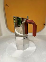 I prodotti presentati sono “Menhir” di Michel Anastassiades, una caffettiera ispirata alle “Pietre lunghe” che rappresentano la ritualità così come il gesto di bere il caffè espresso. Una forma ottagonale per la moka in acciaio che recupera l’armonia discendente delle linee in un unico pezzo, beccuccio compreso. Il bollitore “Toru” che in giapponese significa “attraverso”, disegnato da Nendo, dove il manico diventa beccuccio in un gioco di materiali dove l’acciaio domina con la sua eleganza per poi passare a “Itsumo” del giapponese Naoto Fukasawa, che è un set di piatti decorati realizzato da un artista specializzato in pitture decorative e che vuole essere un servizio per tutti i giorni e per tutte le pietanze, senza un utilizzo specifico ma universale. Infine, la serie “Eugenia”, ovvero un servi-