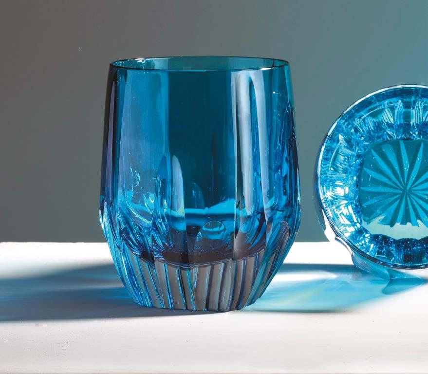 Glass, an eternal and completely recyclable material, takes center stage with its luminous transparency and ability to re ect light, adapting naturally to both classic and contemporary contexts. The historic collections, such as Folies,